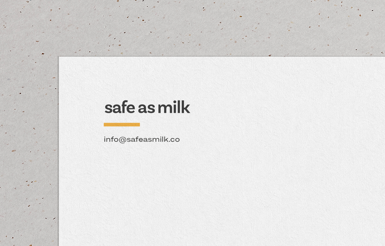 Safe As Milk now has an identity that resolves the tension the brief presented: confident and professional where it needs to be, and characterful where the opportunity arises.